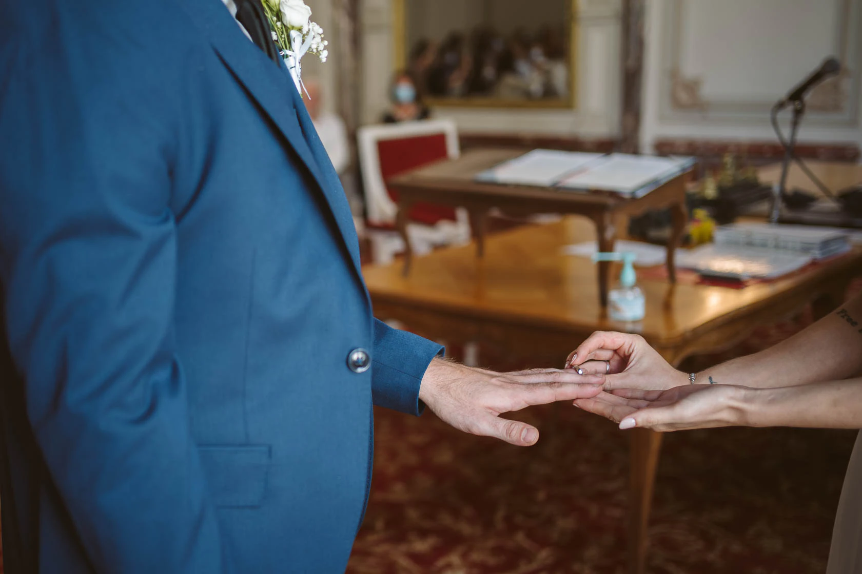 Parce qu’elle offre un cadre élégant et symbolique pour une cérémonie officielle, tout en restant adaptée à un reportage naturel et émotionnel. L’article montre justement le mariage civil de Ségolène et Adrien dans ce lieu.