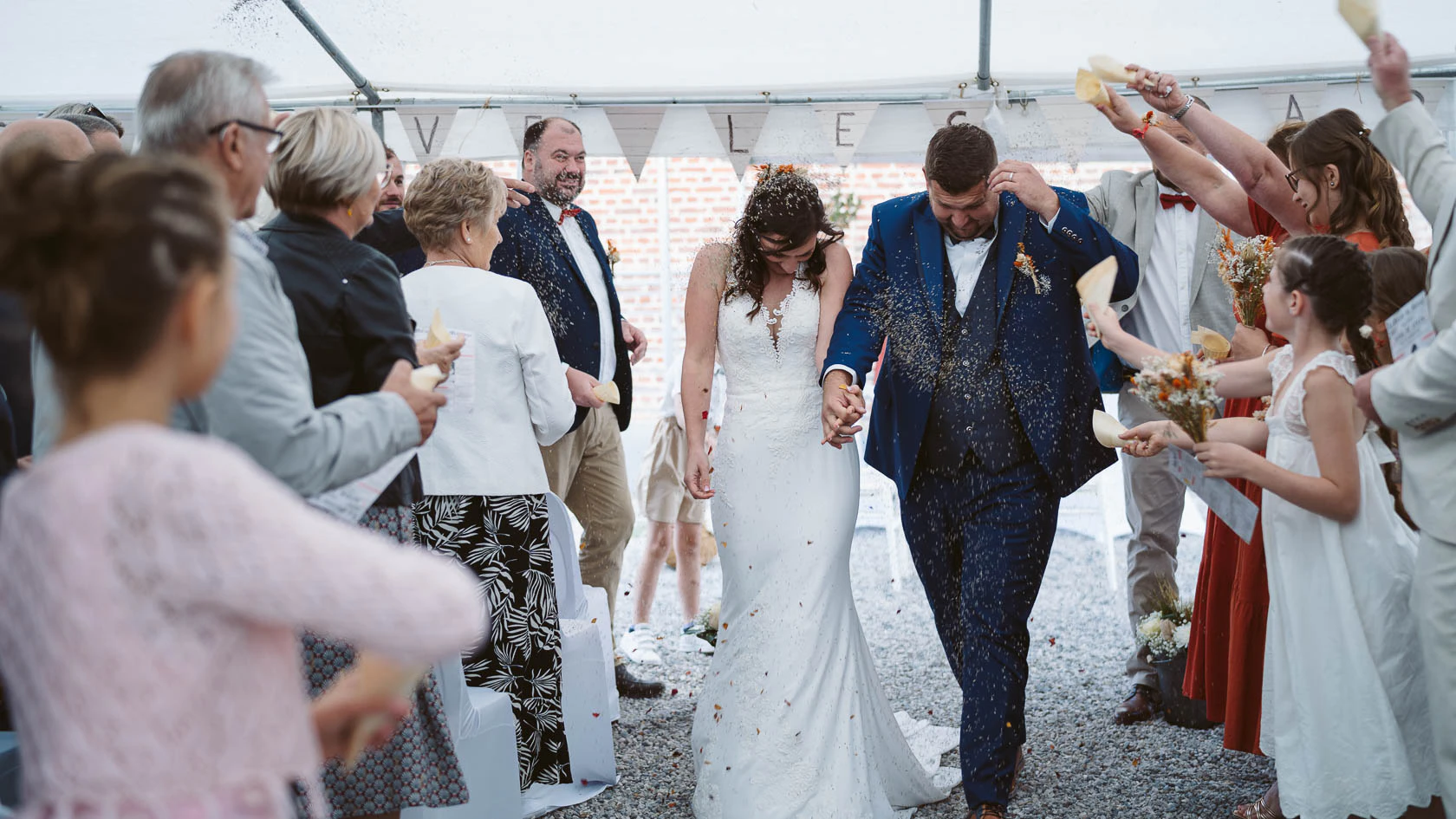 La suite de la journée s’est déroulée à Férin, près de Douai, dans un cadre soigneusement préparé pour accueillir les invités. La cérémonie laïque a constitué l’un des grands temps forts du mariage.