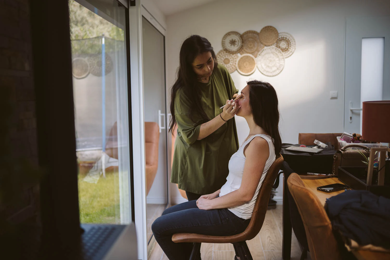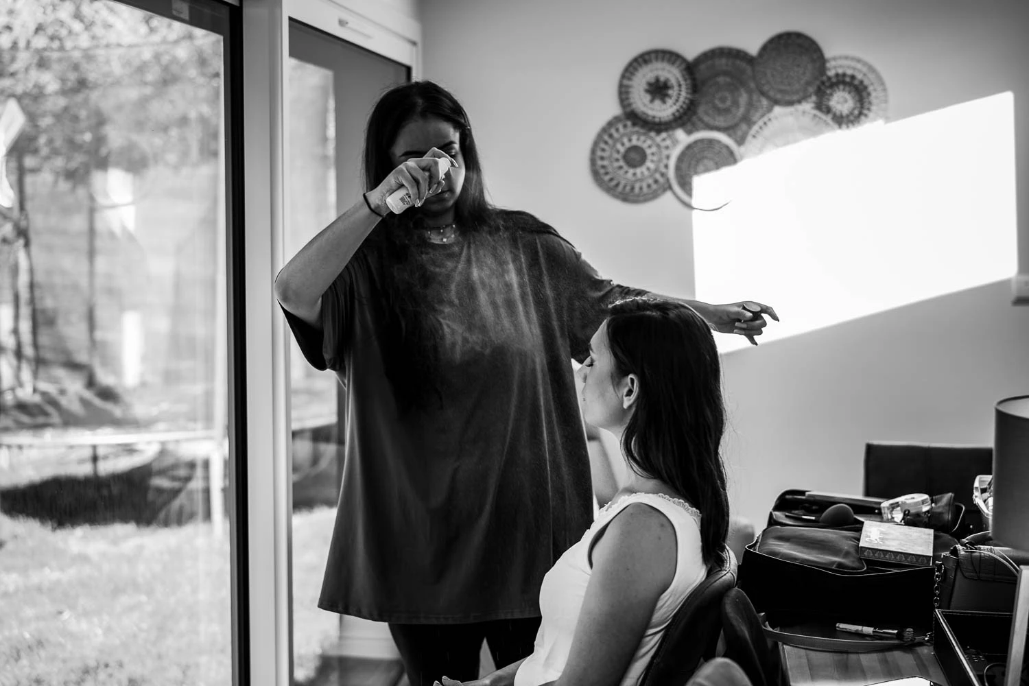 Je me suis ensuite rendu à Courchelettes, dans la maison familiale de Pauline. Là encore, l’ambiance était chaleureuse, vivante et pleine de douceur. Entre coiffure, maquillage, rires partagés et derniers échanges avec les proches, la journée prenait progressivement une autre intensité.