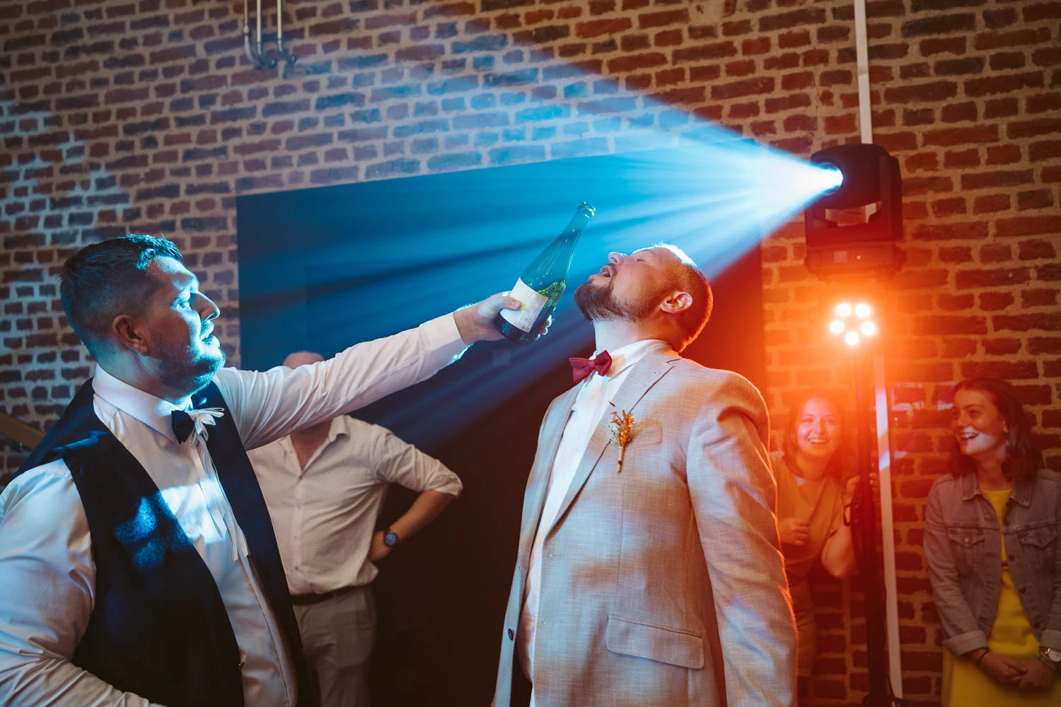 La soirée s’est ensuite prolongée dans une ambiance festive, avec cette énergie particulière des mariages heureux, lorsque tout le monde est pleinement là pour célébrer les mariés. Ce sont des images très différentes de celles des préparatifs ou de la cérémonie, mais elles complètent parfaitement l’histoire de la journée.