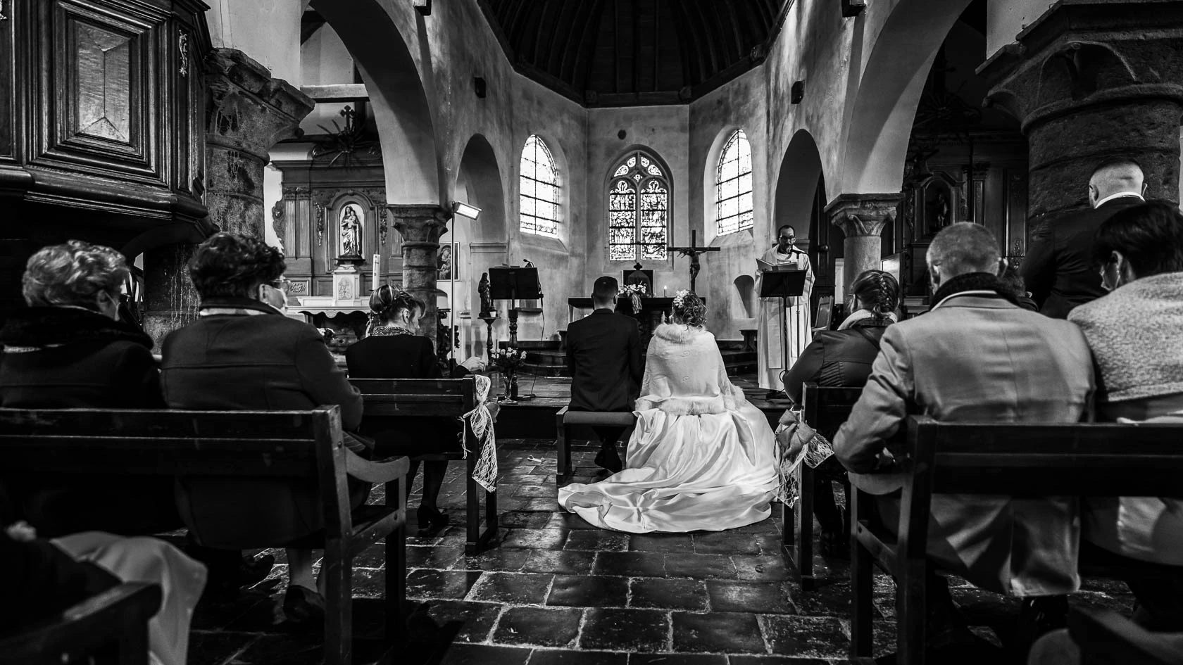 Les mariages d’hiver possèdent souvent une atmosphère très particulière dans les lieux de culte. La lumière y est plus douce, l’ambiance plus enveloppante, et l’on ressent souvent davantage encore la chaleur des présences et des émotions. En décembre, les décorations, les bougies ou simplement la tonalité de la saison renforcent cette impression d’intimité.