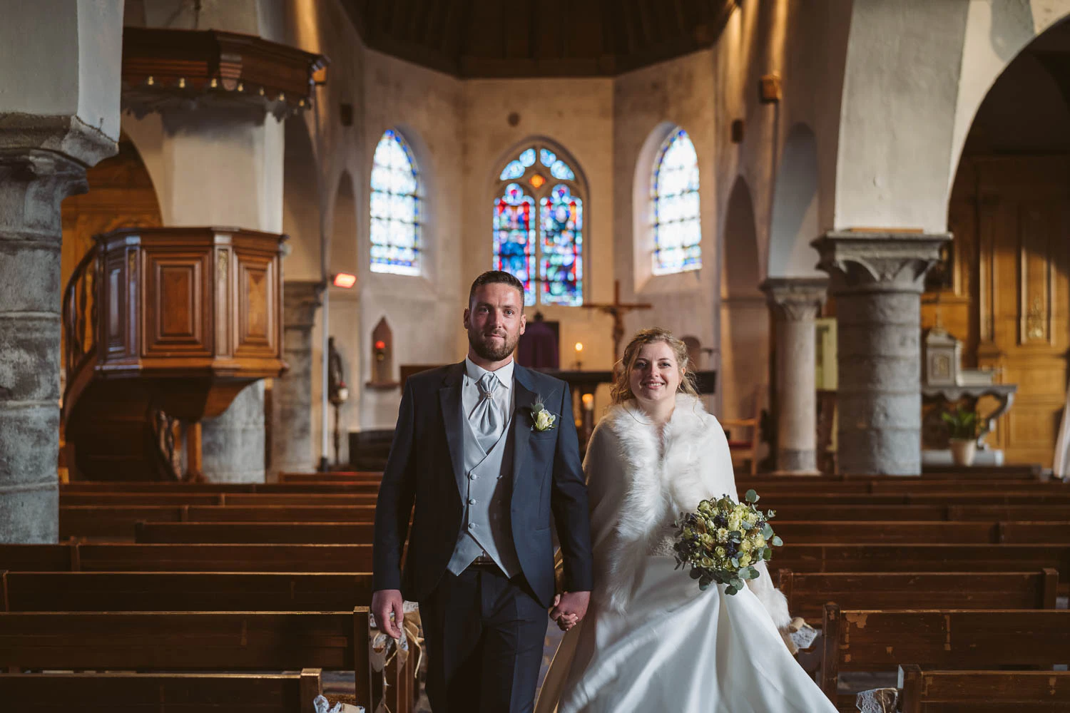 Ce que j’aime dans le mariage de Julie et Dimitri, c’est l’équilibre entre les temps forts de la journée et les détails plus discrets. Une main serrée pendant la cérémonie, un sourire échangé à la sortie de l’église, un regard pendant la séance couple, ou encore la douceur des lumières de décembre : tout cela participe à raconter une histoire vraie.
