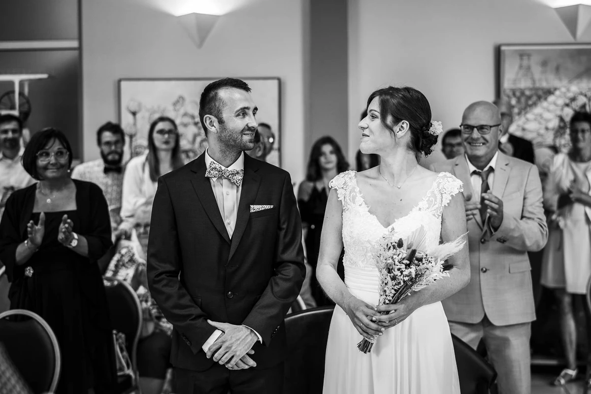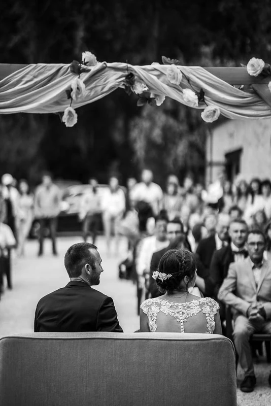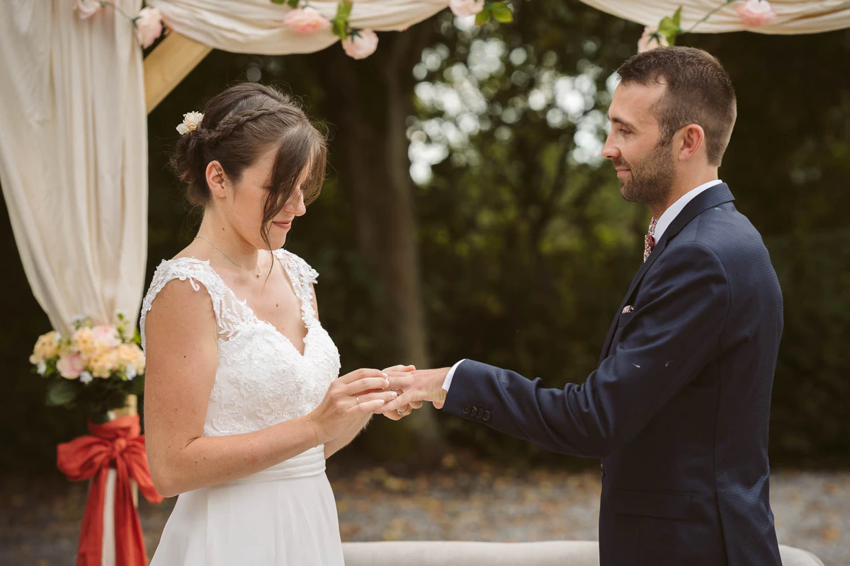 Entourés de leurs proches, Pauline et Aurélien échangent leur premier “oui”.