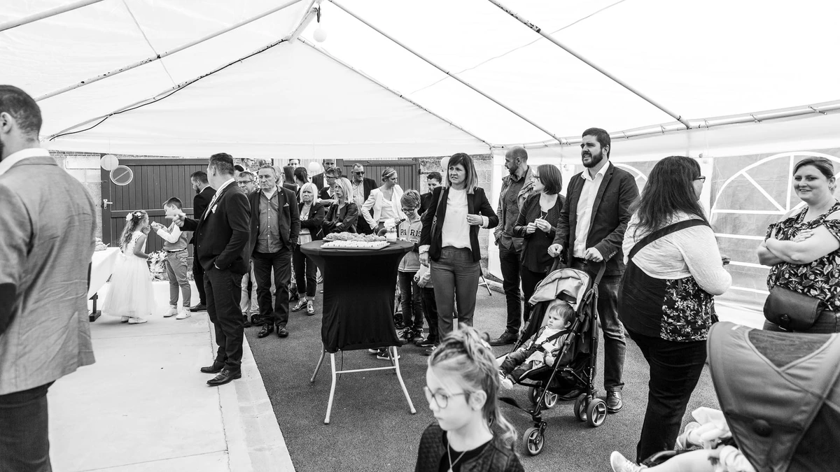 La cérémonie civile, la sortie de mairie, l’échange des alliances, les réactions des proches, les photos de groupe et les instants spontanés du vin d’honneur font partie des souvenirs les plus précieux.