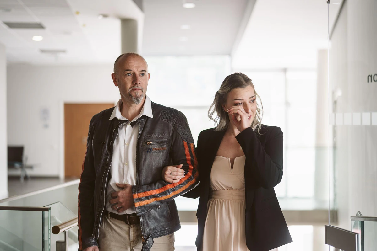 À l’écart de l’agitation, Jenny et Amaury s’accordent un moment rien qu’à eux.