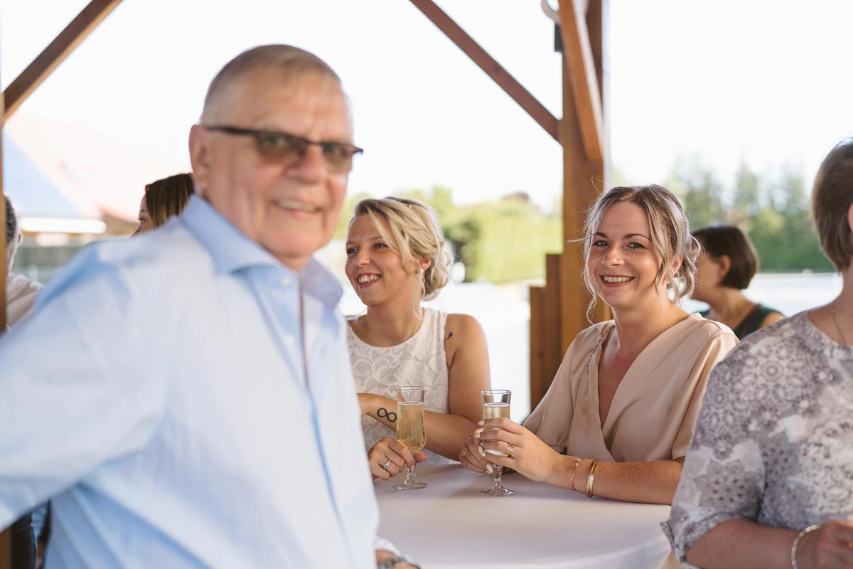 Le vin d’honneur se déroule dans une ambiance conviviale, porté par une lumière douce de fin de journée.