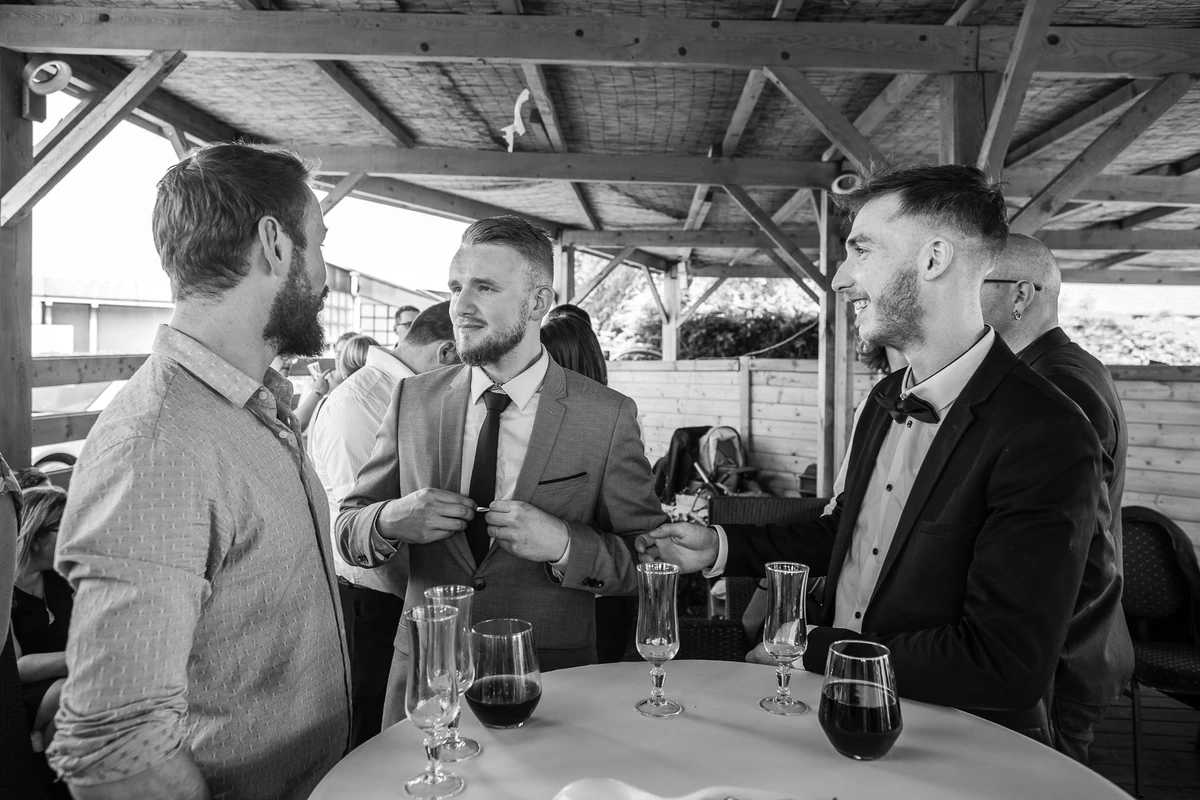 Les terrasses face aux étangs accueillent les premiers échanges, les félicitations, les rires partagés.